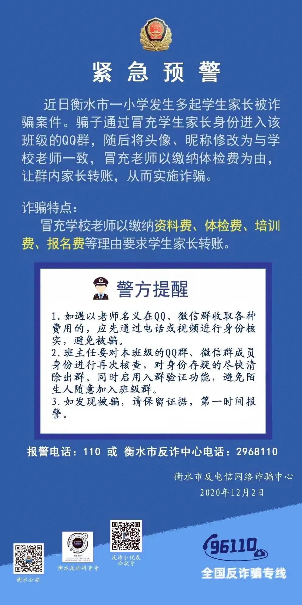 此前,定州市、衡水市也曾发出预警,还请各位教师、家长提高重视,严防此类案件发生↓↓↓