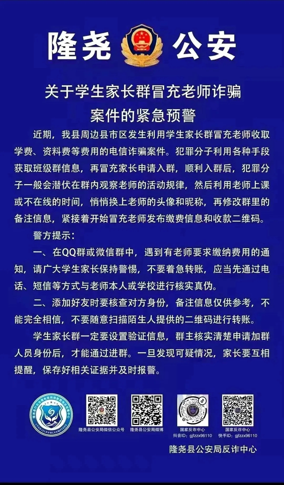 随着家长对孩子成长教育的重视,家长与老师的联系也越来越紧密。但他们的交流多集中在各类聊天软件群聊,网络虚拟身份具有迷惑性、隐蔽性的特点,这就给一些不法分子可乘之机。