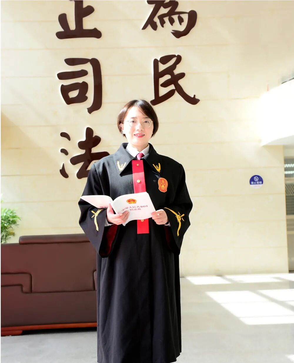清晨,春日的阳光轻洒在湘阴县人民法院河西中心法庭的庭院内,一个充满活力的身影开始在法庭忙碌着,先把法庭的庭院、花坛的卫生仔细检查一遍,再交待法警务必严格安检,然后快步到审判庭与法官助理开启网络设备准备庭审……