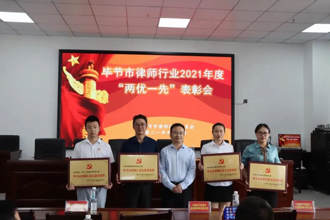 为庆祝中国共产党成立100周年,深化党史学习教育,进一步发挥先进典型的示范带动作用,激发各党支部和党员坚定信念、勇担使命、砥砺前行、接续奋斗。2021年9月4日,毕节市律师行业召开2021“两优一先”表彰会,毕节市律师行业党委委员、毕节市律师协会副会长姜桢祥主持会议,获表彰的优秀共产党员、优秀党务工作者及先进基层党组织代表出席会议。 会上,姜桢祥为4名优秀共产党员、2名优秀党务工作者颁发了荣誉证书,为4个先进基层党组织颁发了荣誉奖牌。手拿荣誉证书和奖牌的律师们表示,能受表彰倍感荣幸,这不仅是荣誉,更是推动大家不忘初心、牢记使命,继续发挥党员的先锋模范作用,继续投身法律服务工作,为维护社会公平正义和解决人民群众法律相关问题的内生动力。 姜桢祥在会上表示,今天的表彰会是为了感谢各位获表彰人员在工作中勤勉耕耘、为民奉献,是为了激励大家今后继续实干苦干、久久为功,更是为了号召我市律师队伍进一步向先进党组织看齐、向优秀共产党员学习,进一步发挥党组织的战斗堡垒作用和党员的先锋模范作用,进一步为法治毕节的建设贡献力量。 获表彰对象名单 一、毕节市律师行业优秀共产党员获表彰对象名单(共4名,排名不分先后) 1.杨国彪 贵州本芳(织金)律师事务所 2.刘国军 贵州恒发律师事务所 3.宋晶晶 贵州威迪律师事务所 4.丁怀兴 贵州源创律师事务所 二、毕节市律师行业优秀党务工作者获表彰对象名单(共2名,排名不分先后) 1.周咏忠 毕节市七星关区司法局律师行业第四联合支部 2.王 玉 中共毕节市七星关区司法局贵州威迪律师事务所支部 三、毕节市律师行业先进基层党组织获表彰对象名单(共4名,排名不分先后) 1.中共毕节市七星关区司法局贵州本芳律师事务所支部 2.中共毕节市七星关区司法局贵州创驰律师事务所支部 3.中共毕节市七星关区司法局贵州黔信(毕节)律师事务所支部 4.中共毕节市七星关区司法局贵州威迪律师事务所支部