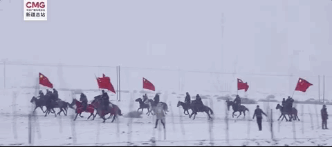 近日,一段“新疆牧民骑马举国旗