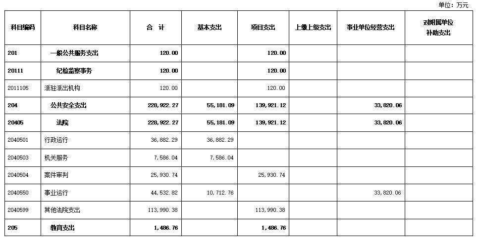 5、其他法院支出(项):指最高人民法院除上述项目以外其他用于法院方面的支出。