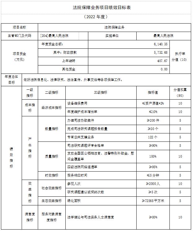 依照《宪法》规定,中华人民共和国设立最高人民法院、地方各级人民法院和专门人民法院。最高人民法院是中华人民共和国最高审判机关,根据《宪法》、《人民法院组织法》及相关法律要求履行职责。为更好地履行职能,完成2022年各项重点工作,组织实施法院保障业务项目十分必要。