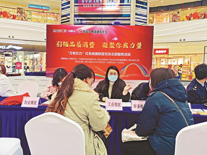 万达社区组织“万有引力”红色商圈联盟党员志愿者开展志愿服务活动(资料图)