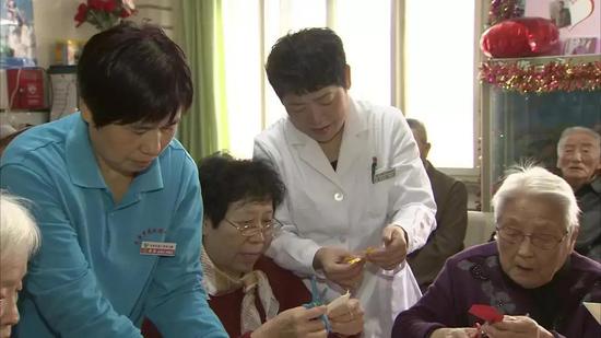 两年后,徐宝宏正式开始护理工作,送菜喂饭、烧水洗澡、端屎端尿,她却没有半点嫌弃。为了让自己真正走进老人心里,她总不忘“投其所好”,挨个缠着奶奶们学习她们最爱的“节目”。几年下来,她学会了唱歌、跳舞、织毛衣、绣花,看到徐宝宏,老人们开心得合不拢嘴。