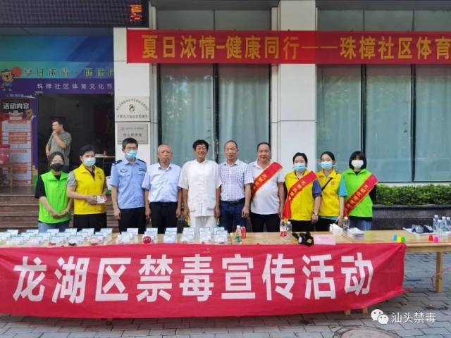 为进一步增强广大居民的禁毒意识,8月7日上午,汕头市龙湖区禁毒办联合汕头市承德社会工作服务中心、卓跃儿童运动馆,利用珠池街道珠樟社区在南航大厦开展的“夏日浓情-健康同行”义医义诊公益活动这一契机,在现场组织了一场禁毒公益宣传活动。