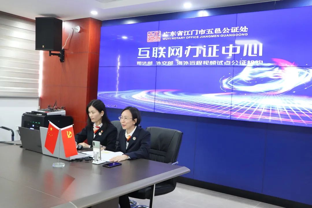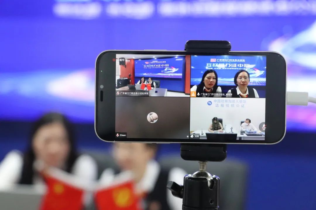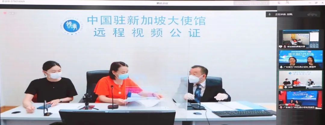 近日,江门市五邑公证处与中国驻新加坡大使馆两次连线,协同开展海外远程视频公证试点工作,为两名旅居新加坡的江门籍侨胞办理了海外远程视频公证,获得了当事人的一致好评。