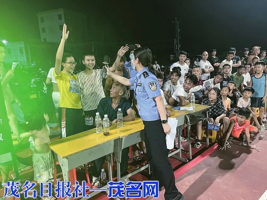 民警和群众互动,向他们宣传反诈知识。茂名晚报通讯员杨金龙摄