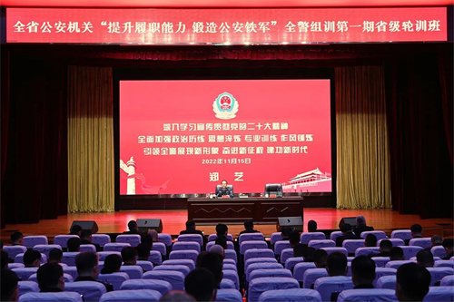 为深入学习宣传贯彻党的二十大精神和习近平总书记重要讲话精神,全面落实公安部实战大练兵系列部署要求,推动全省公安机关“状态提振、工作提神、落实提速、效果提质”,省公安厅党委决定组织开展为期三年的“提升履职能力、锻造公安铁军”全警组训省级轮训班。11月15日,第一期省级轮训班正式开班,副省长、公安厅党委书记、厅长郑艺出席开班式,围绕“深入学习宣传贯彻党的二十大精神,全面加强政治历练、思想淬炼、专业训练、作风锤炼,引领全警展现新形象、奋进新征程、建功新时代”主题,作动员讲话并授课。