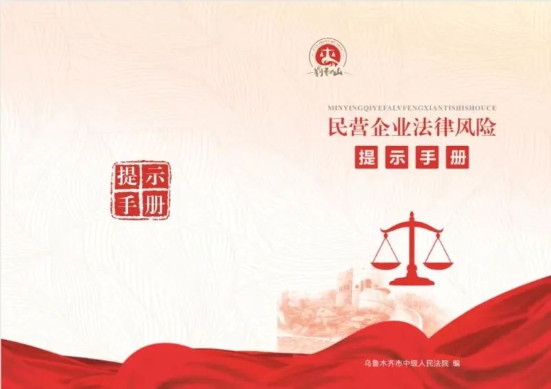 近日,乌鲁木齐市中级人民法院立足审判实践,以各审判庭涉企案例为基础,聚集该院审判一线专家,结合企业司法需求,精心总结归纳民营企业在生产经营过程中,特别是在设立、经营、管理、诉讼等方面的66个法律风险点,编印成《民营企业法律风险提示手册》。