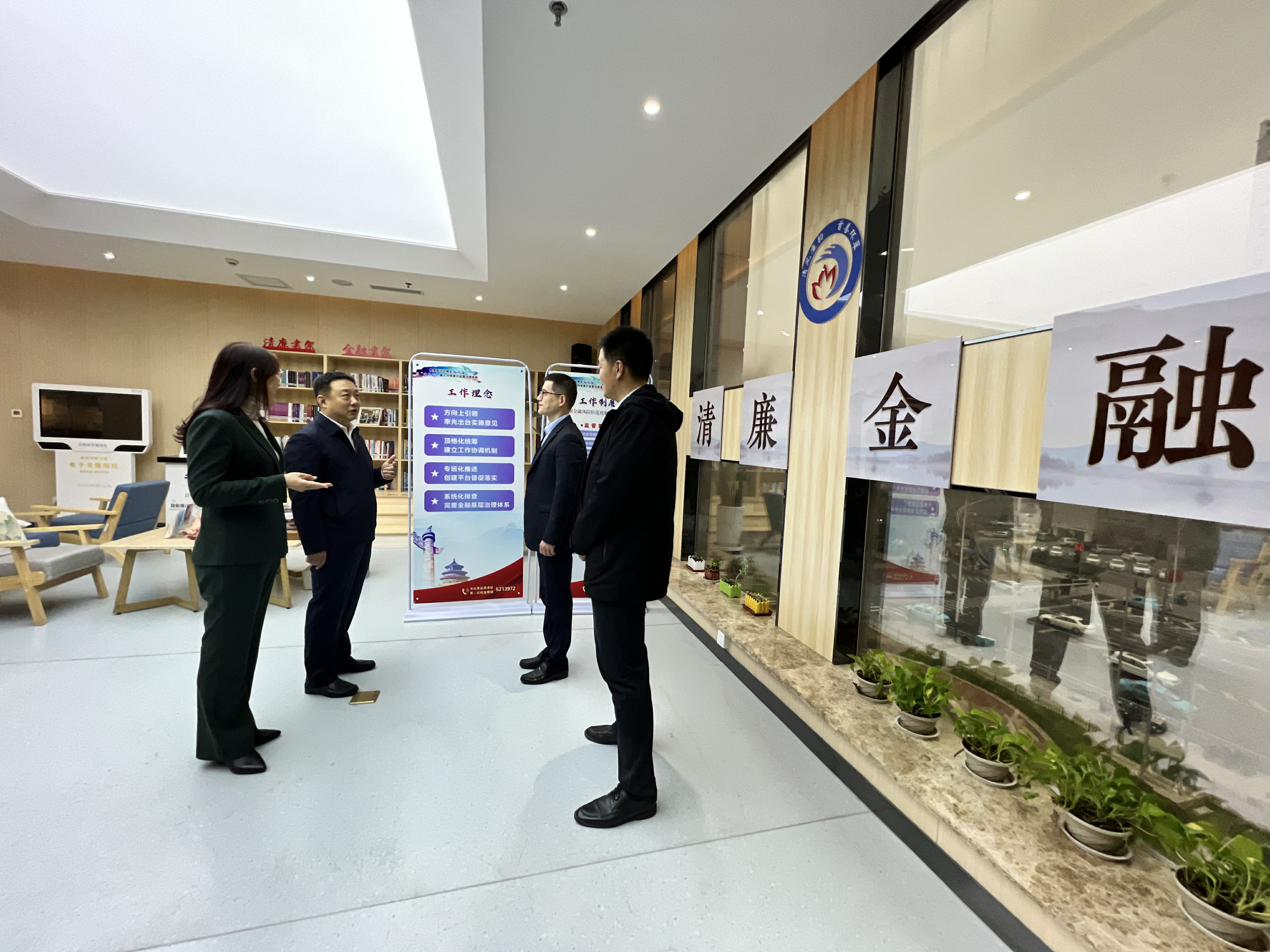 威海市纪委监委大力推进廉洁文化进金融企业,打造有影响力的清廉金融文化建设品牌,培育清廉金融文化,增强金融领域反腐败工作内生动力。图为市纪委监委班子成员和派驻第二纪检监察组到金融专题廉政教育基地督导清廉金融品牌建设情况。 王柬力/摄