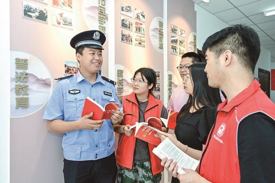 在抓好理论学习的同时,积极开展交流共建,推动12名社区民警进入所在社区党委班子,切实将党建成效转化为基层社会治理合力;与街镇有关部门联合成立领导小组,在赤龙南街综治中心设置前置警务室,每周确定4个半天作为“联络日”,及时沟通信息,构建派出所、综治中心、矛调中心、网格中心、司法所等部门共同参与的“党建引领、多元共治”基层治理格局。