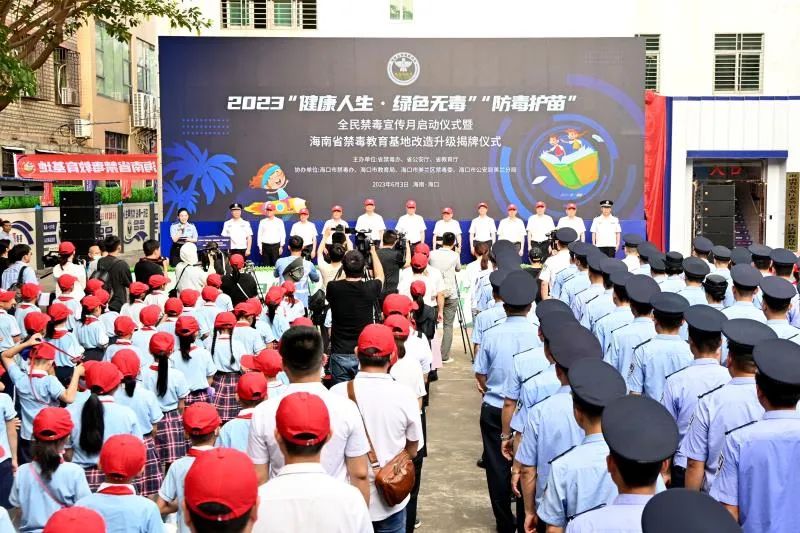 6月3日上午,2023“健康人生·绿色无毒”“防毒护苗”全民禁毒宣传月启动仪式暨海南省禁毒教育基地改造升级揭牌仪式活动在海口主会场、全省各市县区27个分会场同步举行,拉开了今年6月全民禁毒宣传月的大幕。副省长、省禁毒委副主任、省公安厅厅长蔡朝晖出席仪式并宣布禁毒宣传月正式启动。