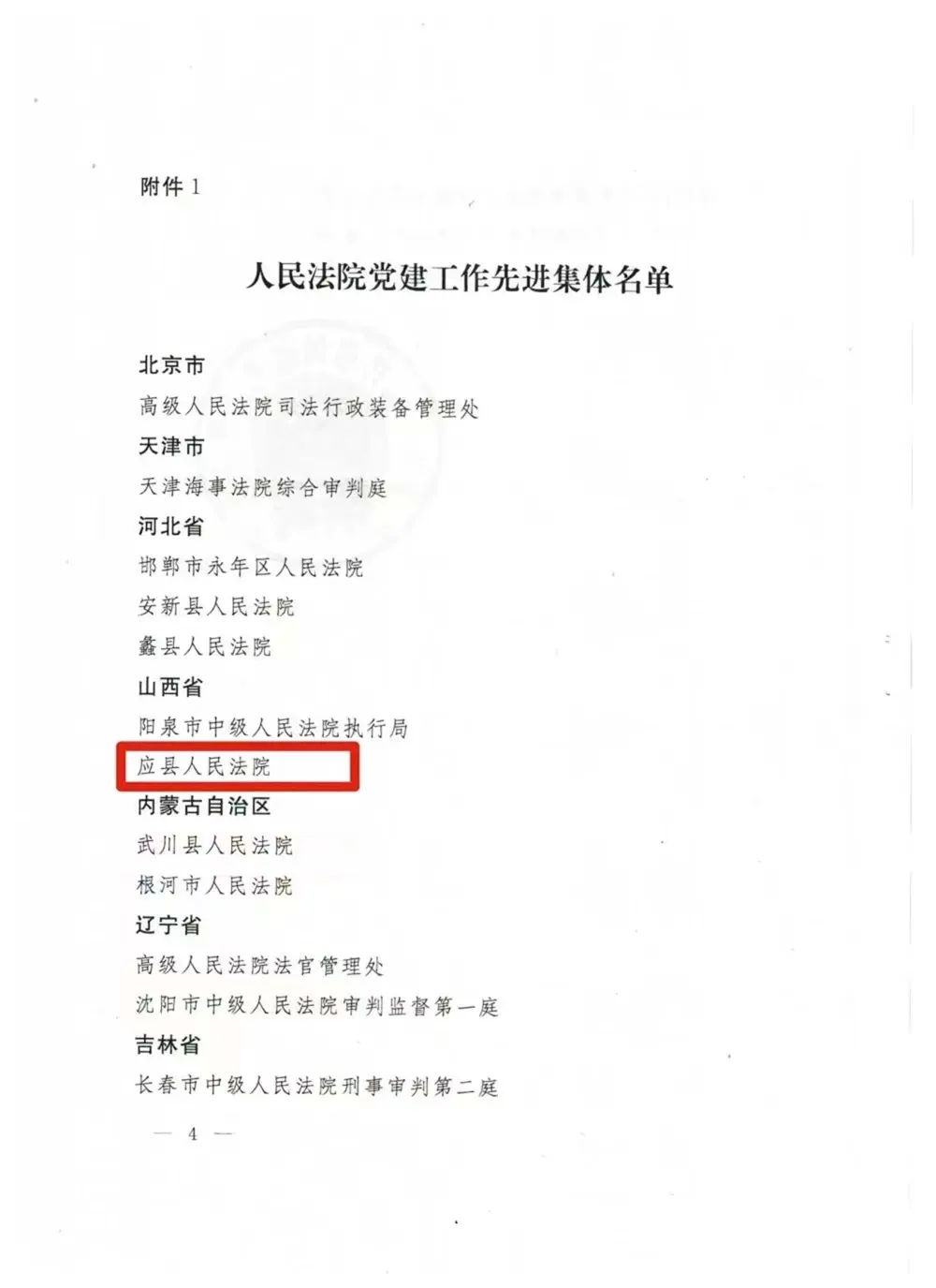 近日,最高人民法院印发《关于对人民法院党建工作先进集体和先进个人予以表扬的通报》,对全国法院系统党建工作中表现突出的集体和个人予以通报表扬,应县人民法院喜获“人民法院党建工作先进集体”称号。在建党102周年之际,这一殊荣无疑是对应县人民法院党建工作最大的肯定。
