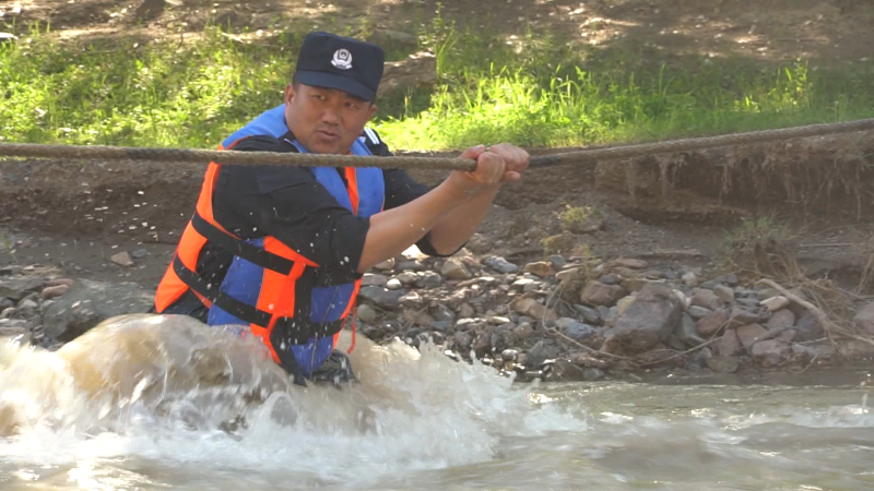 时间就是生命,面对不断上涨的洪水,何永军第一个跳入河中,将绳索捆绑在自己与农牧民群众的腰间。