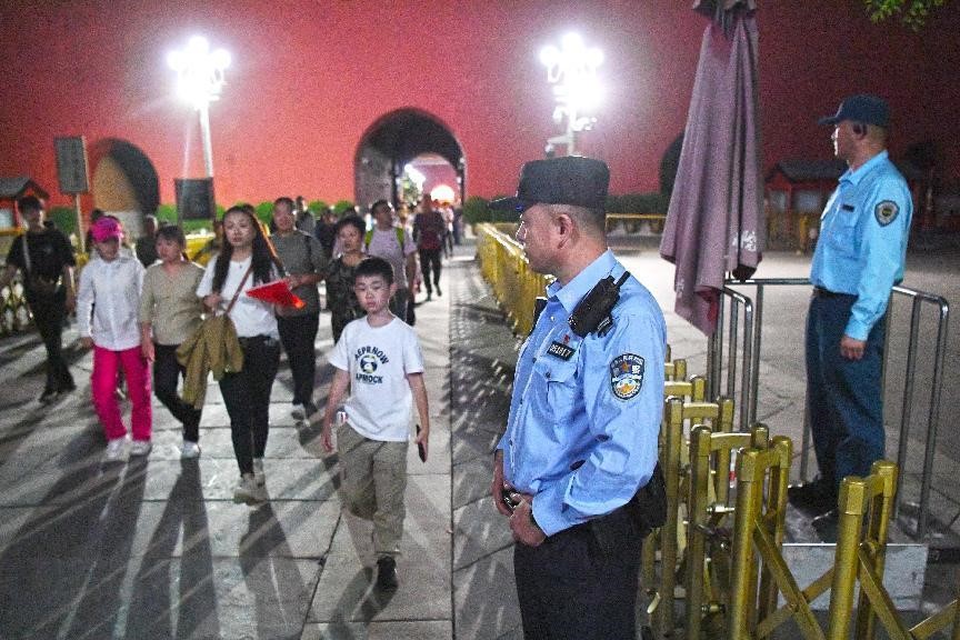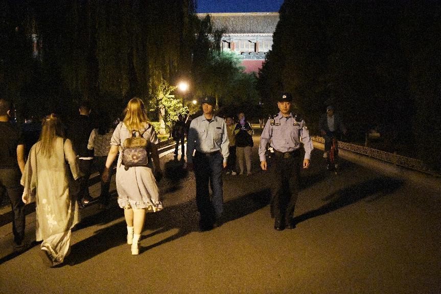 朱欣欣介绍,故宫派出所的巡逻范围南起端门区域,北至神武门区域,由于故宫被列入世界文化遗产,所以民警肩负着重要的巡逻保卫职责。双节期间假期较长,根据往年规律,迎来的游客也将比往日增多,所以,警方不但加强了白天的执勤,在夜间也增派了人手。“对于东西筒子河和午门区域,加强巡控,方便各地游客前来打卡。”朱欣欣说,民警所做的工作就是,必须为游客创造安全的游览环境。“我们的夜巡主要采取步巡和车巡相结合的方式,如果游客出现物品丢失、人员走散、需要问路等求助,我们可以立即提供帮助。”