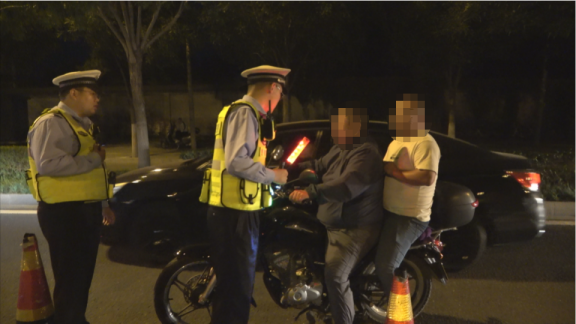 整治行动中,摩托车酒驾、非法改装等交通违法也是交管部门持续重拳打击的违法行为。22日晚上9点多,通州支队潞河大队民警查获一名饮酒后驾驶摩托车的驾驶人,车后还坐着驾驶人的朋友,两人均没戴安全头盔。经过呼气式酒精检测,显示司机酒精含量数值为30mg/100ml,属于饮酒后驾驶机动车。民警依法对司机处以1500元罚款、机动车驾驶证暂扣六个月的处罚,同时驾驶证记12分;同时对二人未戴头盔的违法行为一并进行处罚。
