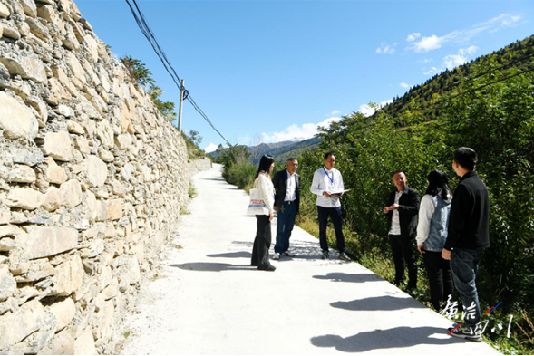 小金县纪检监察干部正在实地督查了解道路硬化情况。(叶海霞 摄)
