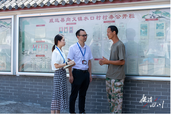 威远县纪委监委干部在向义镇水口村了解该村公共服务运行维护资金使用公示情况。(代莹 摄)