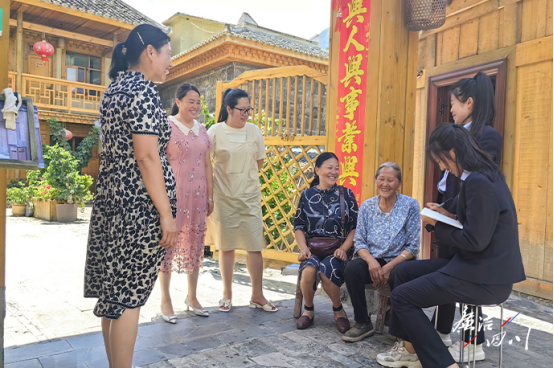 康定市姑咱镇纪委工作人员走访群众,了解若吉村乡村振兴项目运行情况。(陈洪莉 摄)