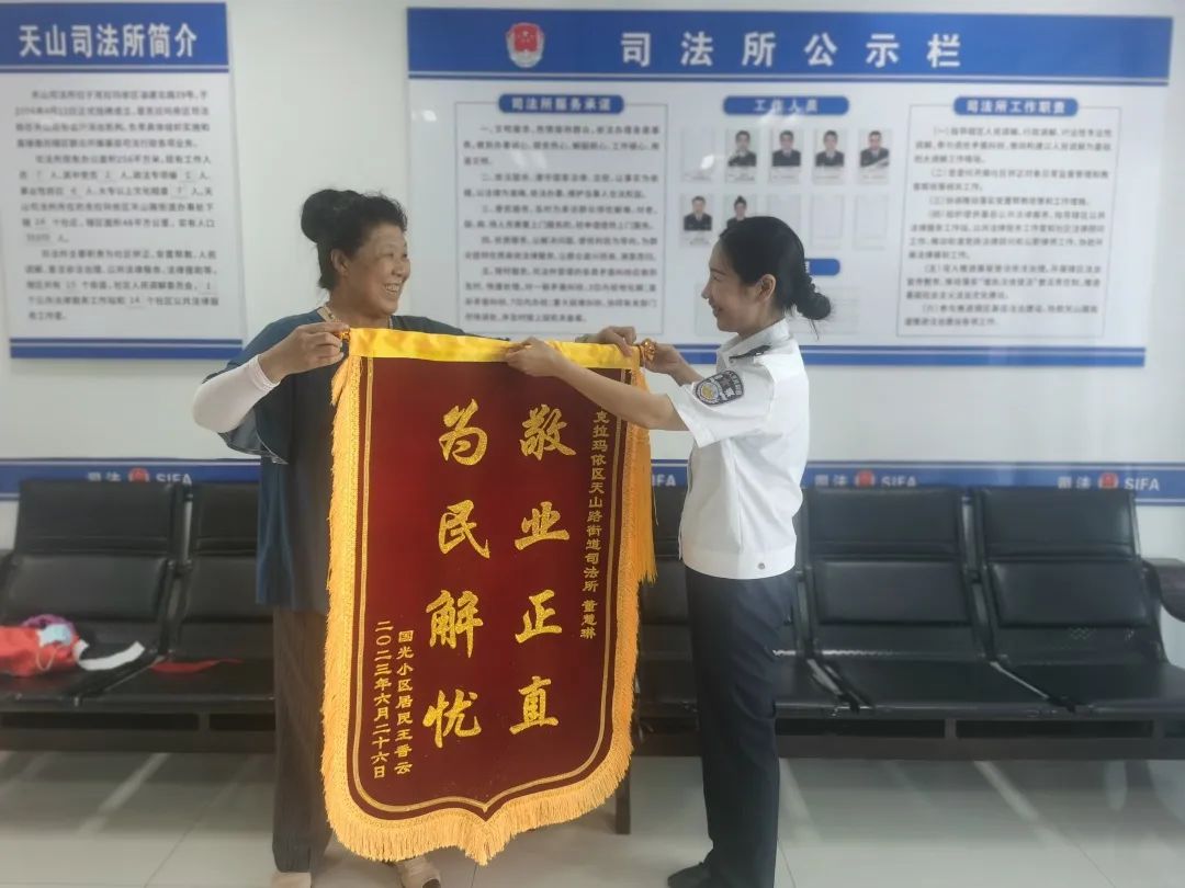 11月1日,克拉玛依区昆仑路街道一名群众在网上看到新闻,发现一名“全国模范人民调解员”就在自家附近的天山路街道。他辗转找到了董惠琳的电话号码,“我在网上看到您是‘全国模范人民调解员’,想请您帮忙调解一起矛盾,可以吗?”董惠琳微笑着说:“当然可以,感谢您的信任。请您说说具体情况……”