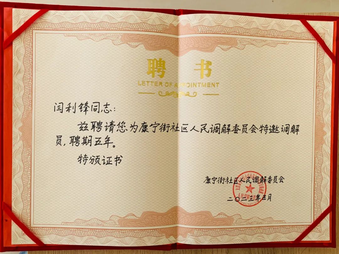 鉴于“人熟、地熟、业务熟、情况熟”的优势,今年5月初,康宁街社区聘请闫利峰成为人民调解委员会特邀调解员,成立了首个个人品牌调解工作室——“好‘闫’好语”工作室,用群众身边人管群众身边事,充分发挥和利用老闫的个人魅力,发挥退休老党员的示范引领效应,力求实现群众矛盾纠纷就地解决,打造居民心中“做得好、信得过、叫得响”的调解工作室品牌。