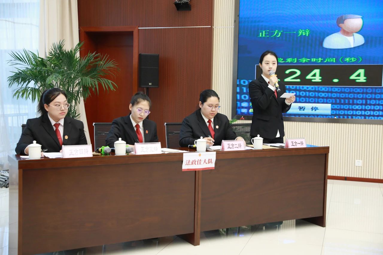 法政佳人队:一辩:郭仕琳、二辩:胡云蔓、三辩:常琳、四辩:田苗。