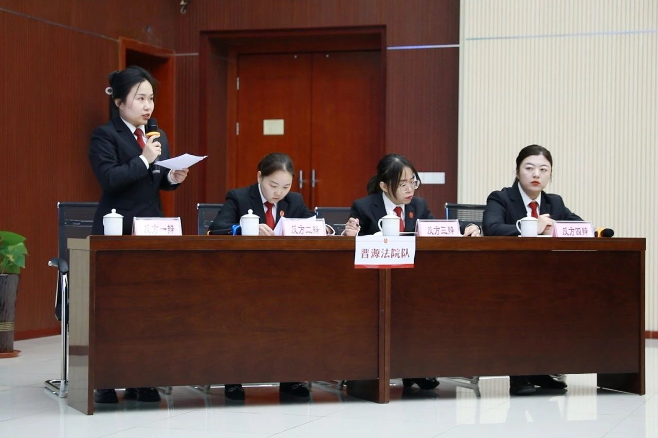 晋源法院队:一辩:杨晨、二辩:牛佳、三辩:阎乐云、四辩:任慧慧。