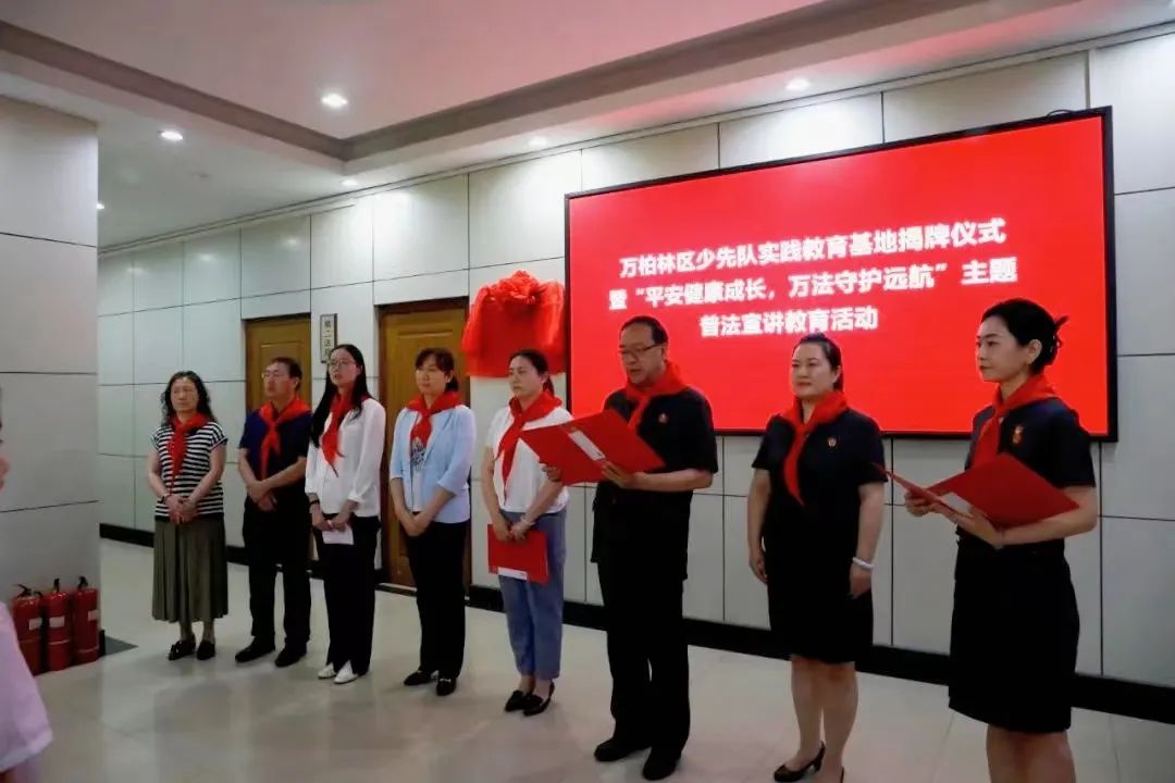 联合区教育局、团区委在法院设立全市首个少先队校外实践教育基地,12名法官担任中小学法治副校长,通过组织法院开放日、开学第一堂法治课、模拟法庭等形式,开展法律宣讲、志愿服务活动。搭建“两微一抖”新媒体宣传阵地,以典型案件教育学生懂法、守法、用法,增强青少年法治观念。
