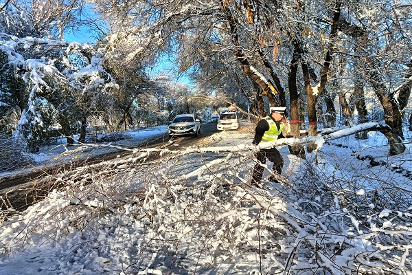 11月3日,乌恰县交警大队启动恶劣天气交通安全应急预案,加强服务保障工作。通讯员 沙辉摄
