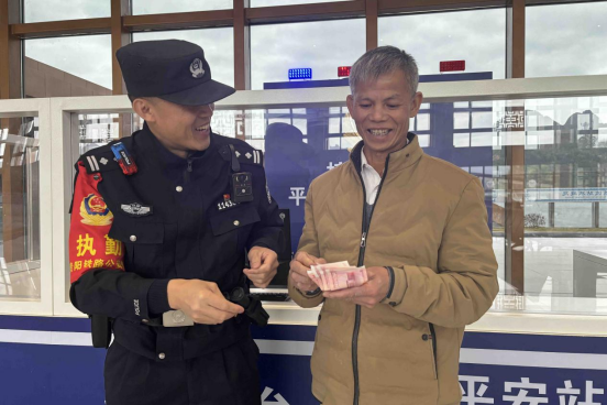 图丨民警通过视频帮助旅客找回从裤子口袋掉落的现金(供图:贵铁公宣)