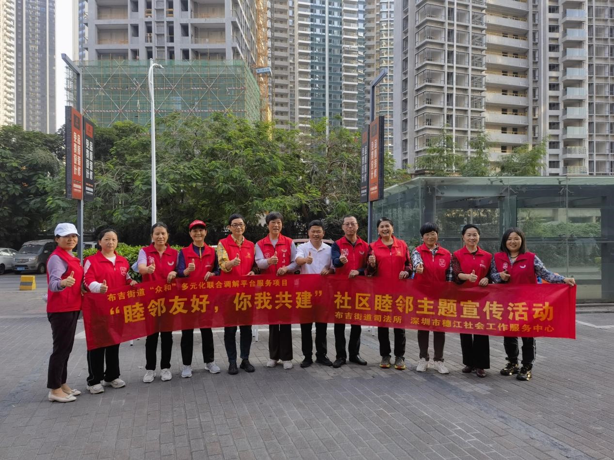 以众和调解平台为抓手,布吉街道司法所还创新实践了“五位一体”矛盾纠纷源头化解综合工作机制,即预警排查、问题研判、分级分流、快速处置、跟踪落实,推进实施“常态巡查、信息收集、归类分析、预警上报”矛盾纠纷隐患排查预警“四步工作法”,统筹协调和动员辖区多方资源和社会力量做好矛盾纠纷预防、排查、化解工作。同时,布吉街道还经常在小区开展沉浸式普法睦邻主题宣传活动,营造了学法、知法、懂法、用法的法治环境。