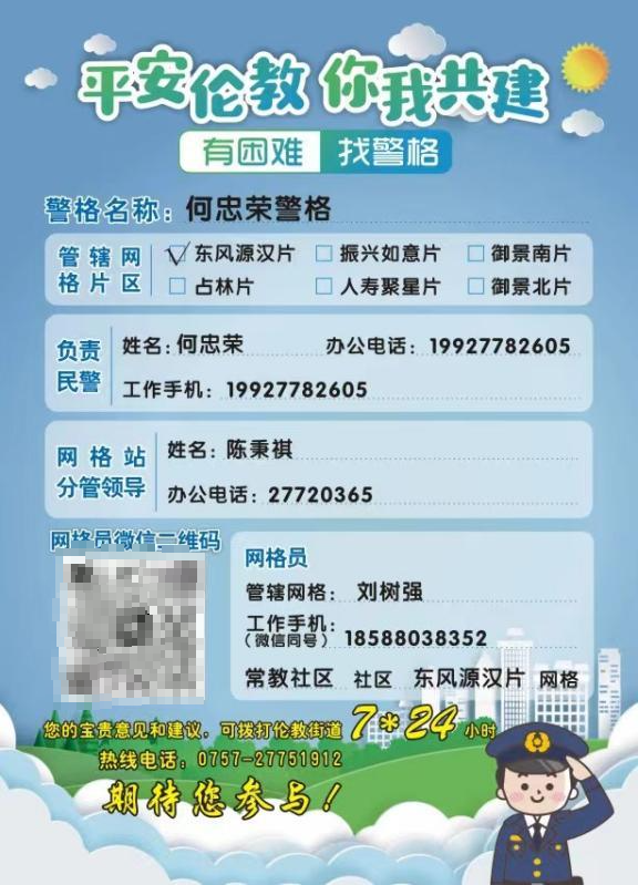 制作警格联系卡是另一个创新举措,通过对外向群众展示该警格的民警、网格员的联系方式,打通服务群众的“最后一米”。