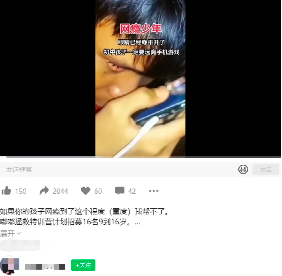 自诩“教育专家”“特训教官”的网红博主们,用同样的话术,歇斯底里地控诉游戏,呼吁国家全面禁止游戏,刻意炮制万千家长们希望孩子戒掉网瘾、远离游戏沉迷的焦虑,赢得了不少家长的点赞和转发,当然,还有消费;他们贩卖的新型“戒网瘾学校”“暑假特训营”“课程”动辄几万元,这些机构提出的希望令家长们无法拒绝——“还您一个好孩子”。