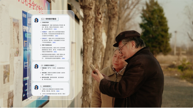 而在影片中,法行宝为爷爷奶奶提供了免费智能咨询并协助生成法律文书,最终助力调解协商。这一情节展现了法行宝如何打破区域与成本限制,让零成本的专业法律支持真正触手可及‌。